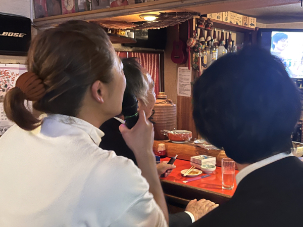 夜が深まるにつれてお客さんが増えていきます。気付けば満席。店内に入りきらない程の人気です。