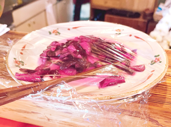 お皿に乗ったお漬物や煮物は自由に食べていいんです。
