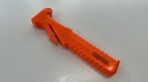 シートベルトは特殊な布でできているので普通のハサミやカッターでは切りにくくなっているんです。ですからこういった専用のものを備えておいた方がいいですね」