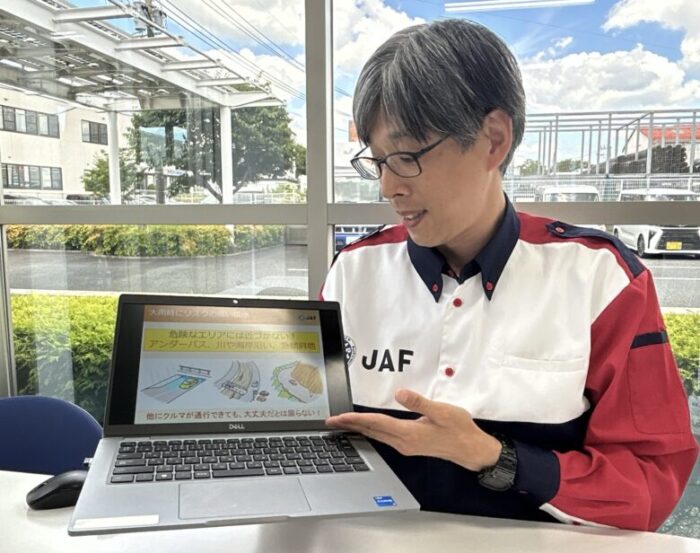 「エンジンがかからなくなった、側溝などにハマってしまった、水に車が浸かってしまい脱出ができなくなったなど様々ですが…やはり水溜まりに突っ込んでしまい、エンストしてしまったというケースは多いですね。」
