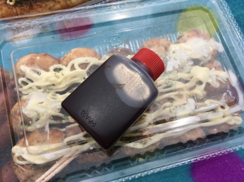 たこ焼きのソースは別添で、甘めのソースがたっぷりとついてきます。