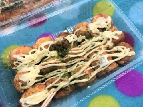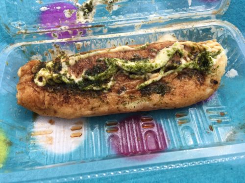 あまりにも安いので、たこ焼とかき氷のほかに、100円のチーズ巻きも頼んでみることに…