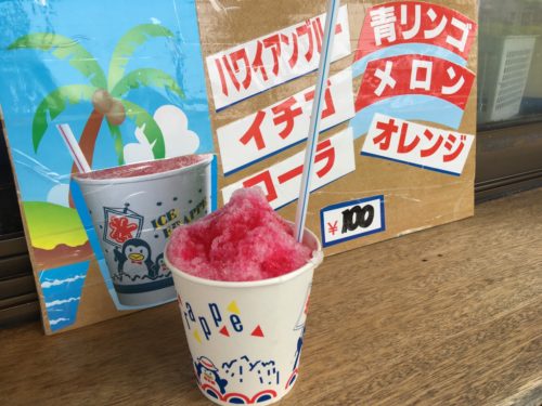 「氷」の旗もあったので、「かき氷はおいくらですか?」と尋ねてみると、「100円です」と、これまた驚愕の値段!昭和です!完全なる昭和のお店がここにありました!!