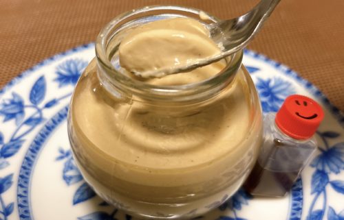 ソースをかけるとまた一味違うほうじ茶プリンを楽しめます。ソースも甘さ控えめでしつこくなくぺろっといけちゃいます。