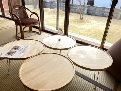 「自由にテーブルを動かして、好きな配置で座れるように…」と作られたテーブルも、ワークショップで手作りされたものです。子どもが飲み物をこぼしても大丈夫なようにフチがついていたりと、優しくて細かい気配りが随所に散りばめられています。