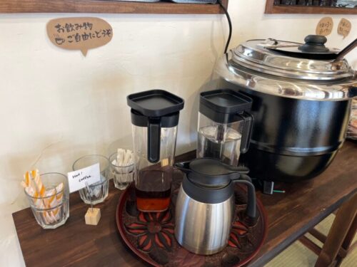 さらに、具沢山の味噌汁に、お茶やお水、ホットコーヒーまで用意されています。