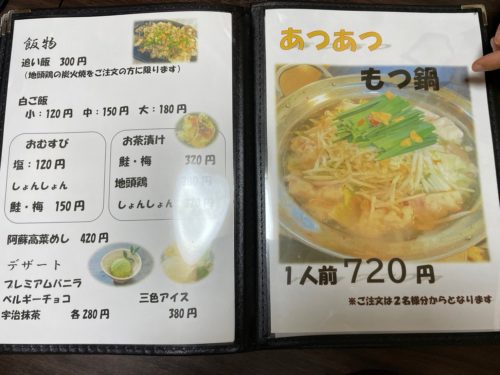メニューでおすすめなのは、なんといっても地鶏炭火焼!