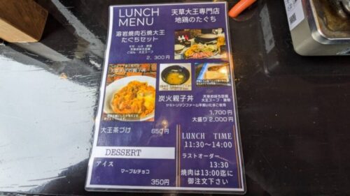 こちらは、天草大王を阿蘇の溶岩で作られた溶岩プレートで、自分で焼いて楽しむスタイル。