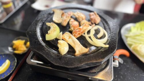 焼き加減を自分で調整しながら食べる時間も、ここならではの楽しみです。