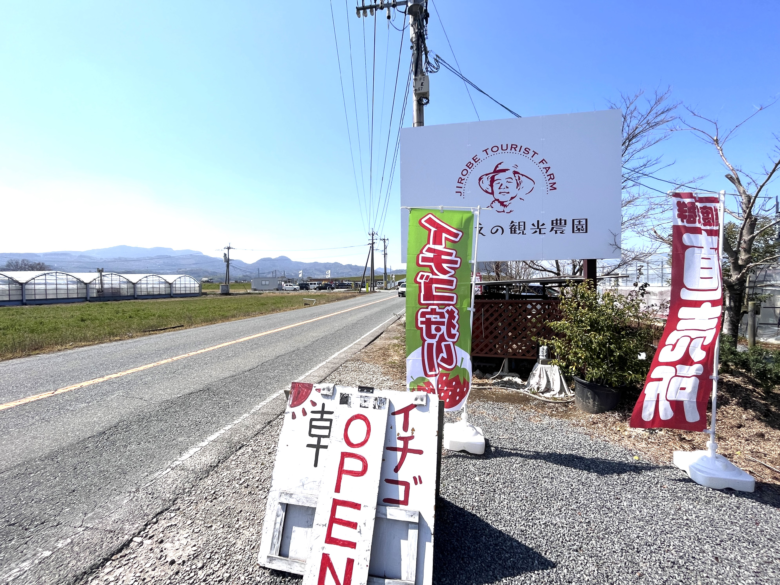 宇土市走潟町にある「じろべえの観光農園」は、いちご狩りに加えて、朝どりいちごやスイーツも販売されています。いちご狩りは栽培されている9種類のいちごが食べ放題とかなり種類が多いのが魅力です。