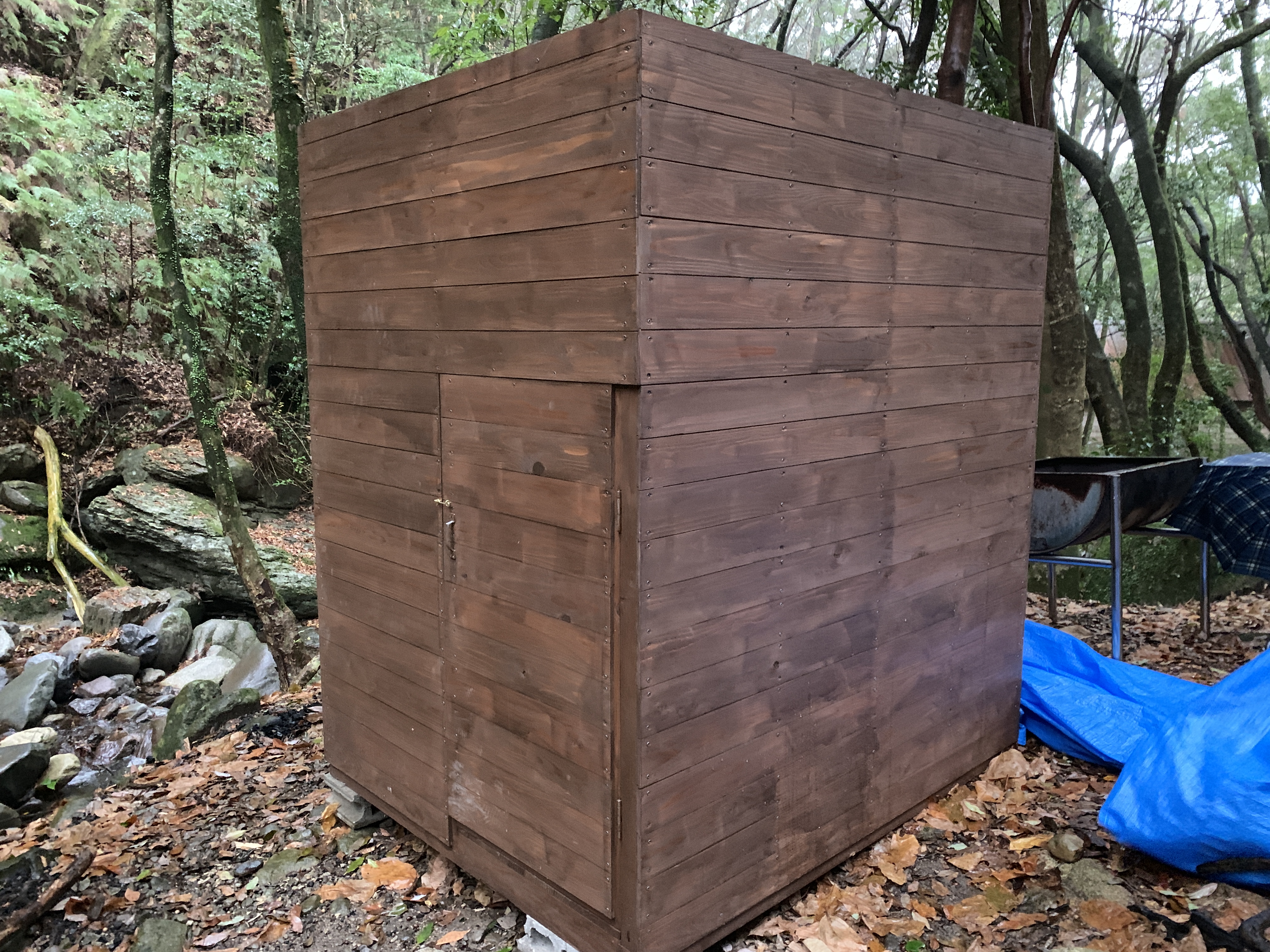 そんな経緯でできたサウナ、改めてみても結構しっかりできてます。板の張り方も整ってる。