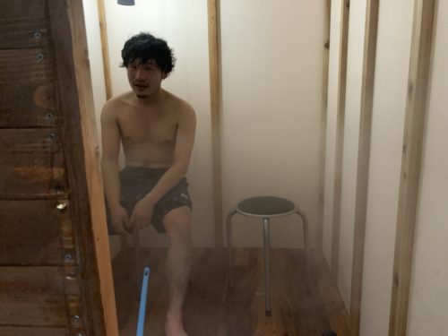 自作サウナの成功に嬉しそうな村上さん。