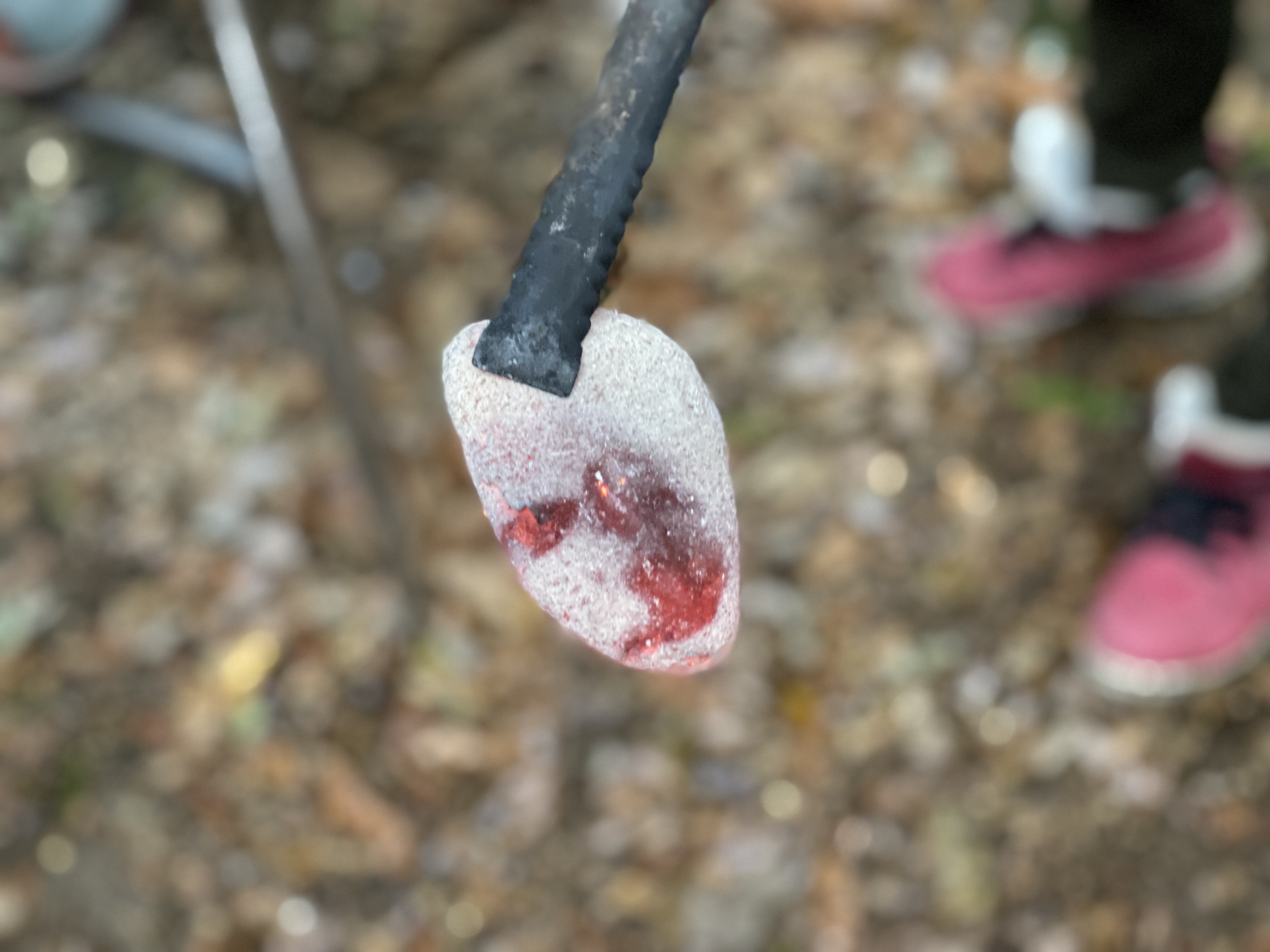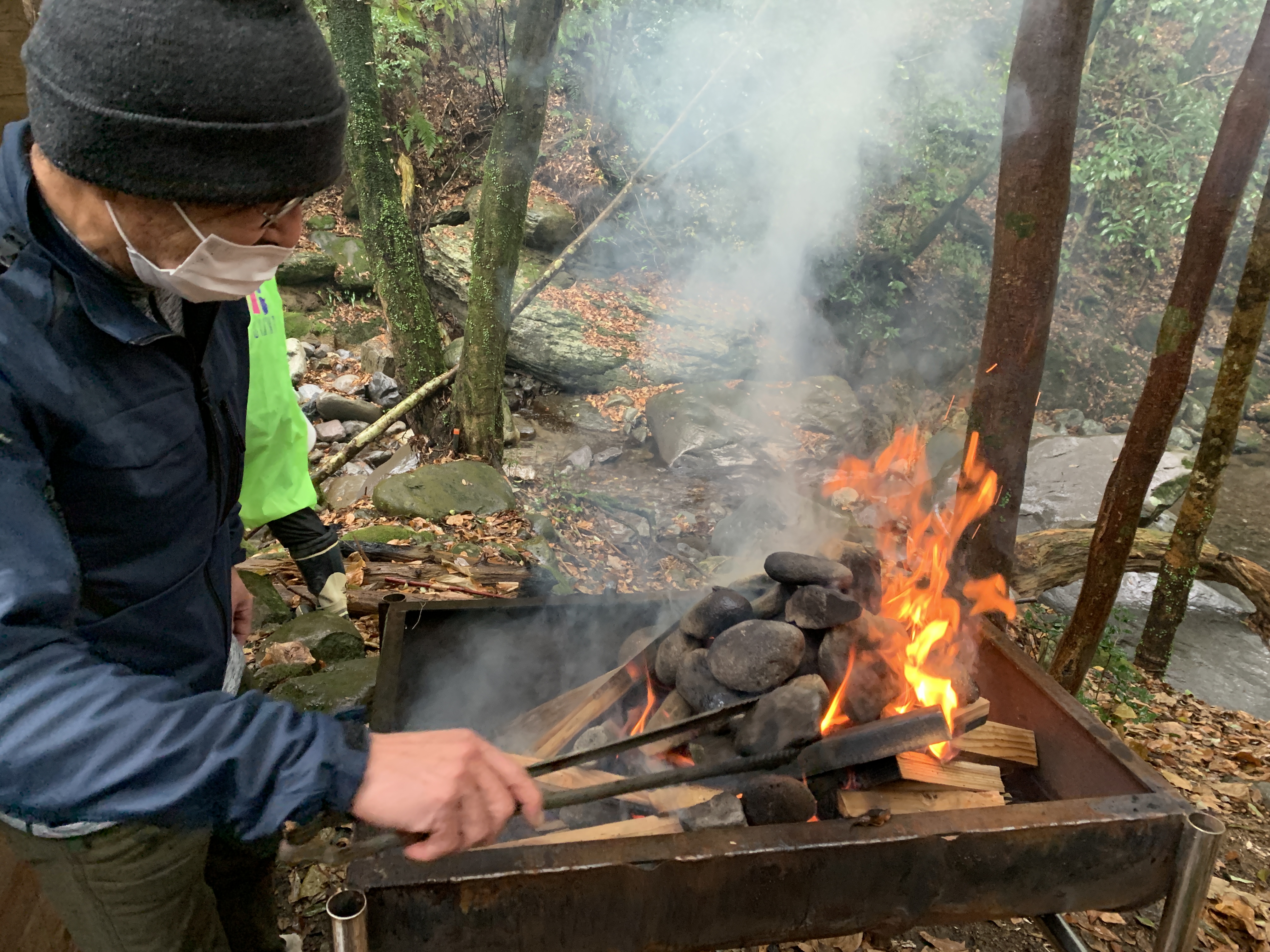 焼いた石は干し柿みたいに真っ赤になってます。まじで熱そう。