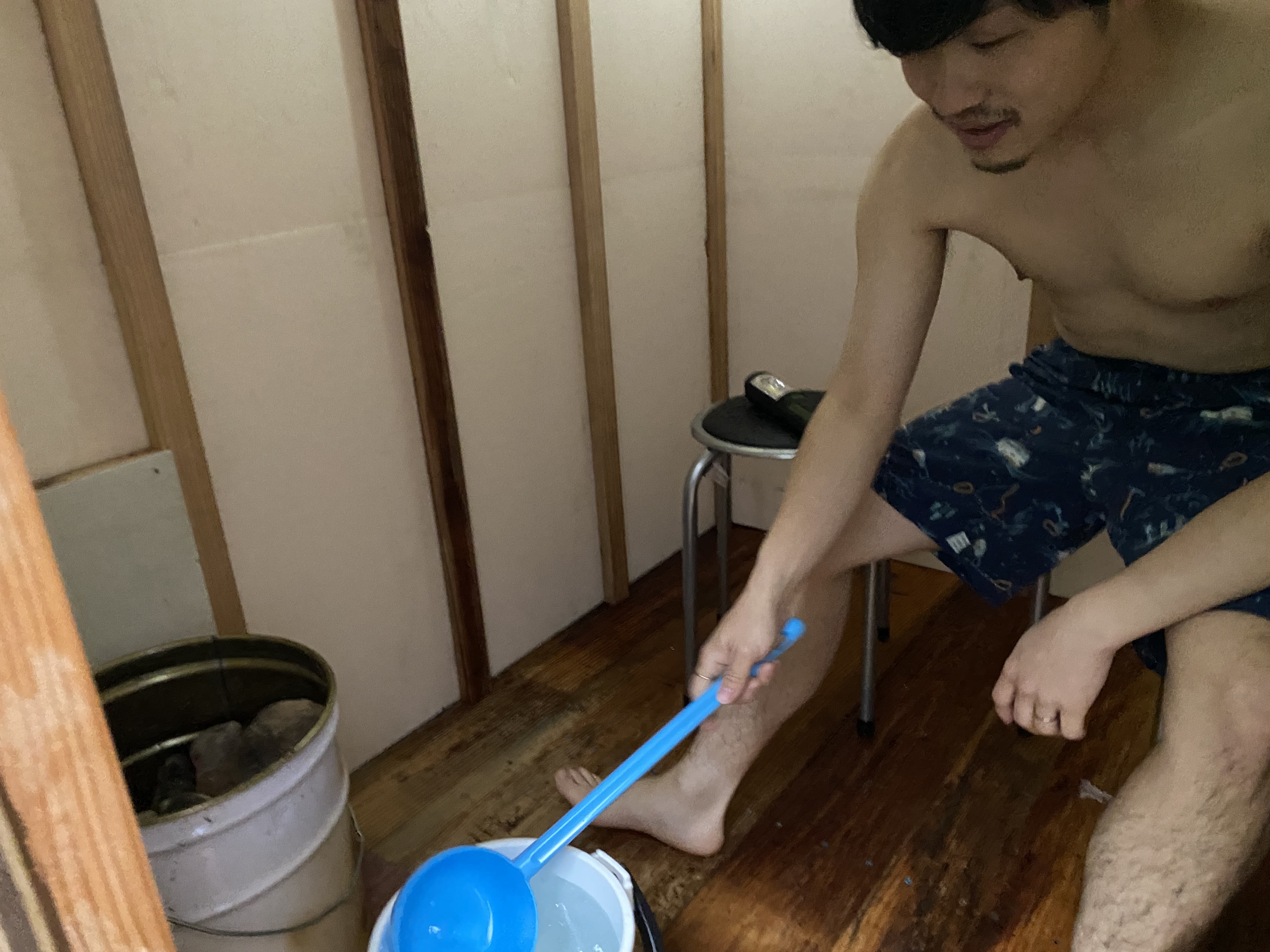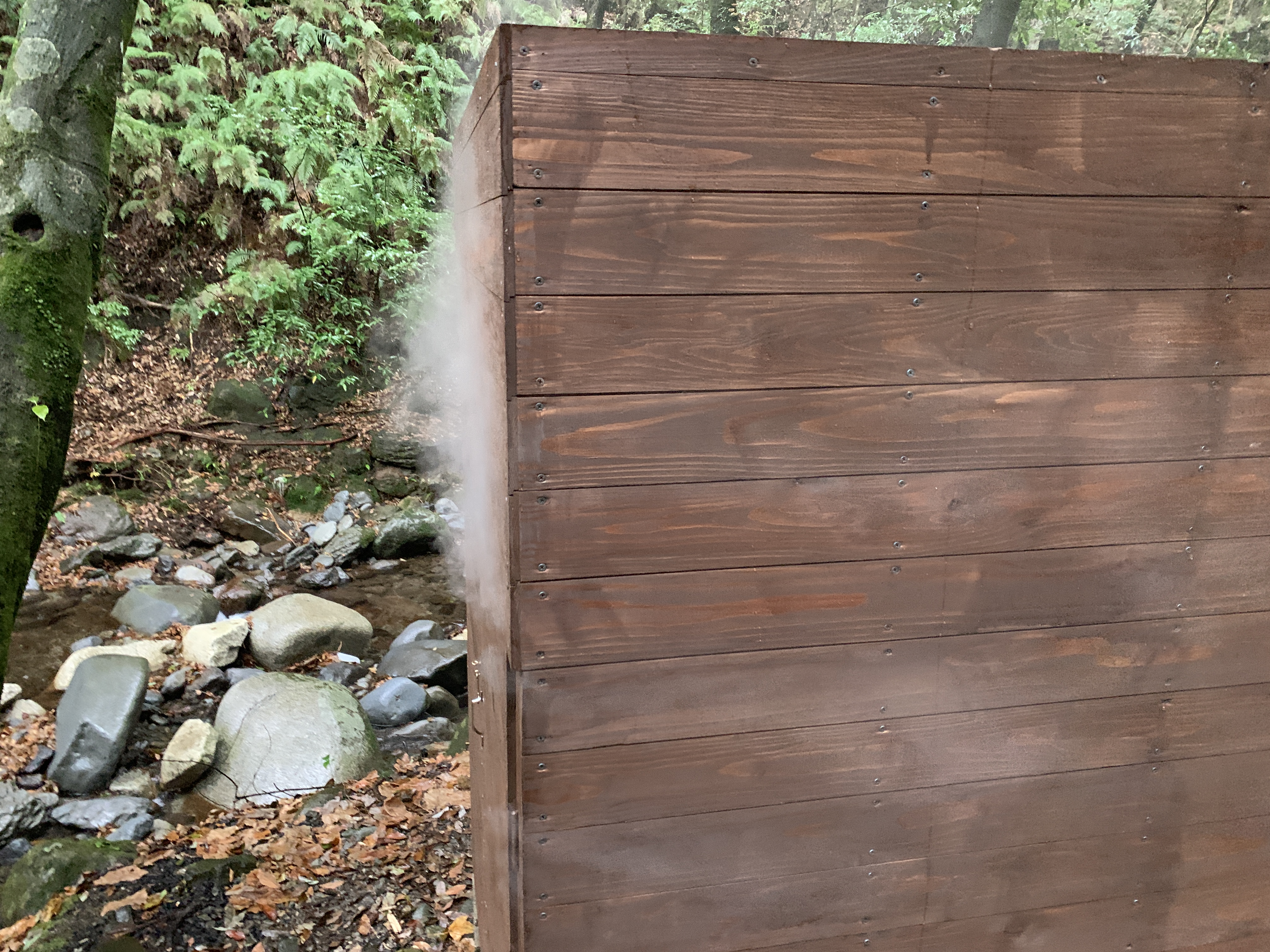 まだまだ試運転中なので、一般の方が使える状態ではないものの、これから水風呂こと渓流に行くまで素足でも痛くないように通路を作ったりと改良予定。