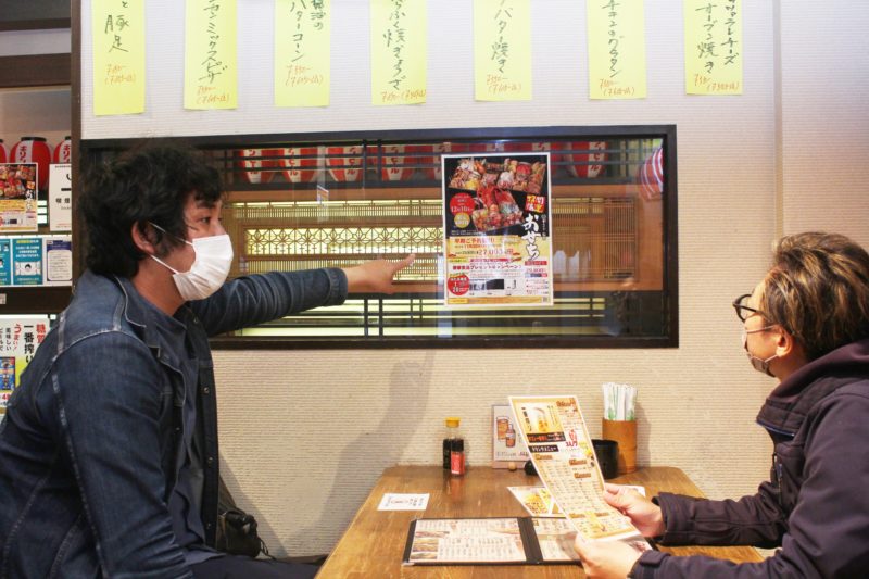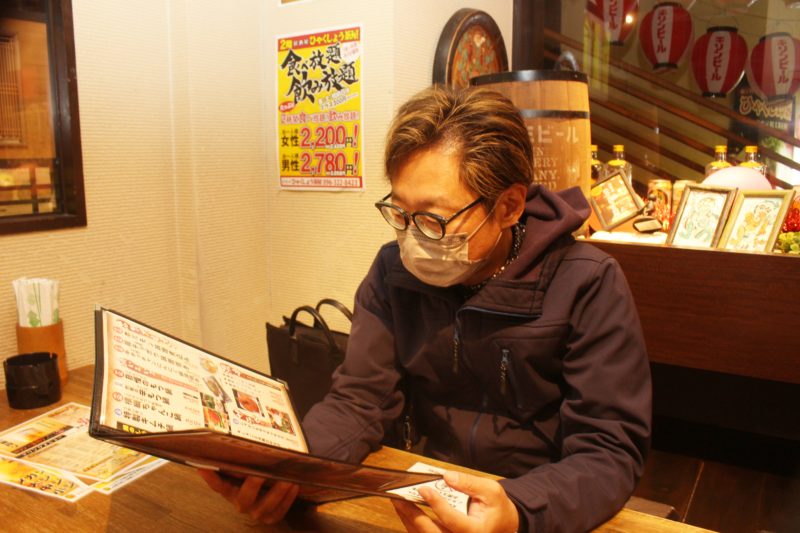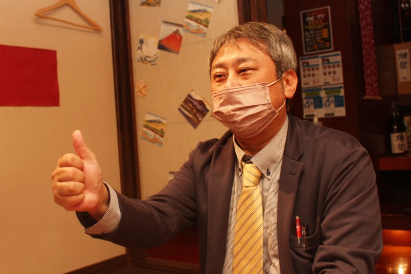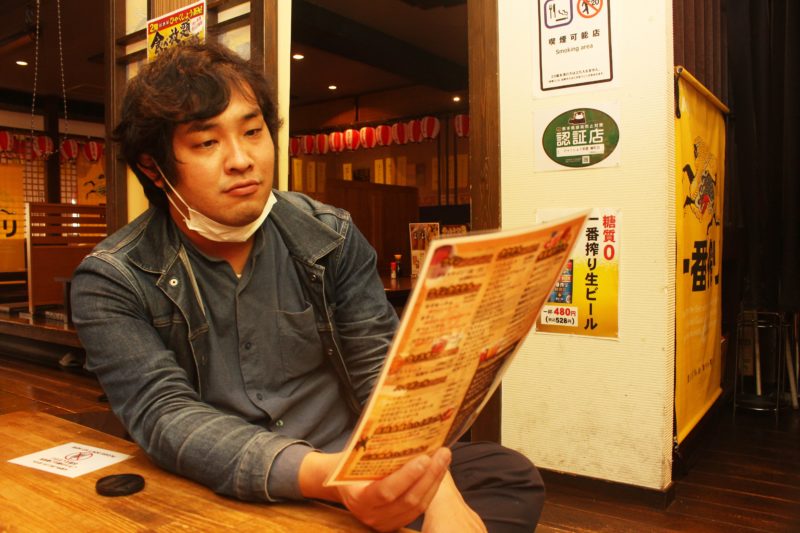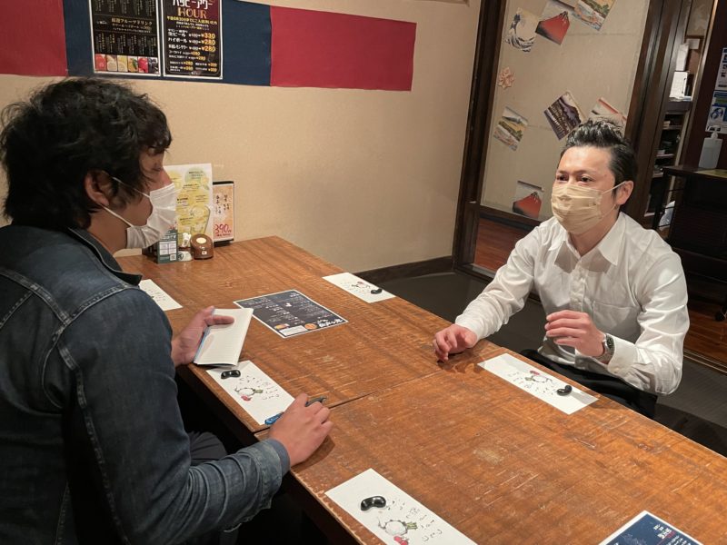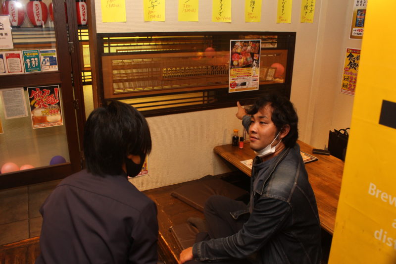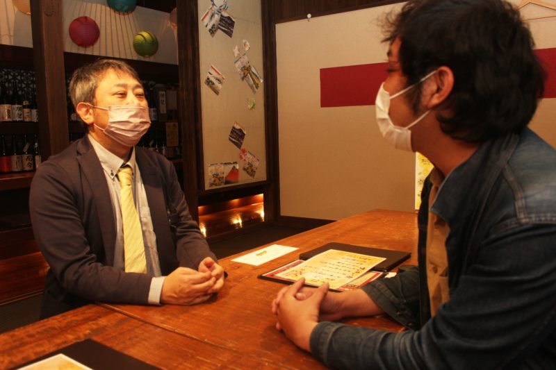 肥後ジャーナル編集部の山田と伊藤です。日頃から馬車馬のごとくこき使われているので、日頃の疲れを労うため駕町通りに移転したひゃくしょう茶屋に飲みにやってきました。