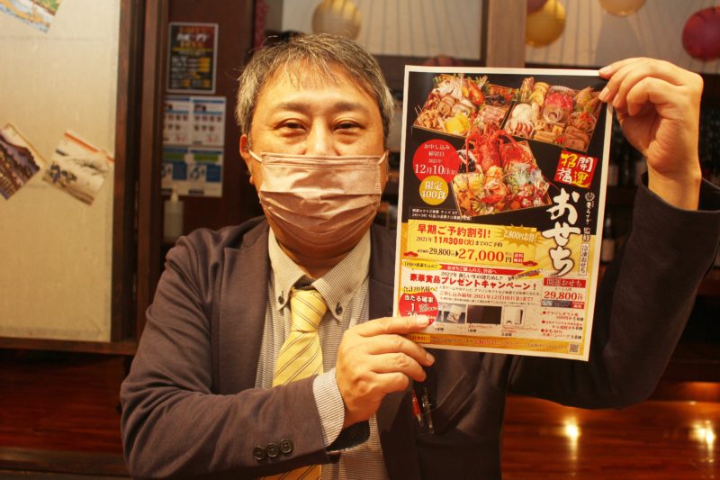 例年、店舗で手作りしていたのですが、大規模調理に関する制度の改正もあり、今年から工場で製造するようになりました。これまでもしっかりとした衛生管理の上で調理を続けてきたのですが、より安心して美味しいおせちを食べてもらうことに重点を置いたんです。冷凍で届いて、自宅で解凍して美味しく召し上がれるんですよ。