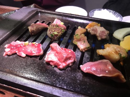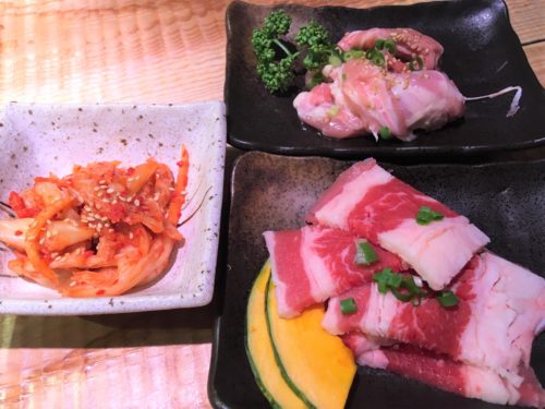 牛カルビに、鶏せせりにキムチ。これをなんなくたいらげ…