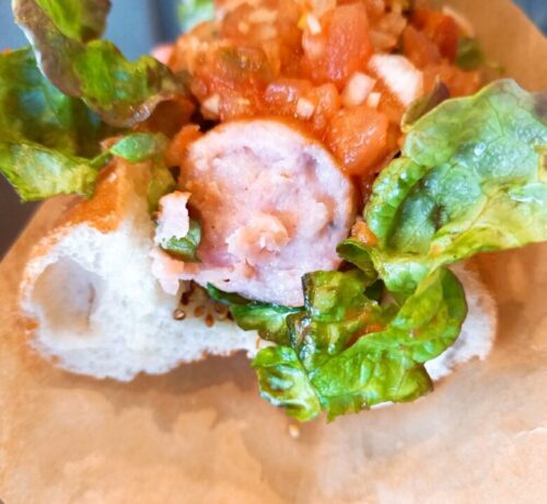 阿蘇のぶっといソーセージを使っていて、これだけでも存在感あるのに、さらに野菜とたっぷりのソース!