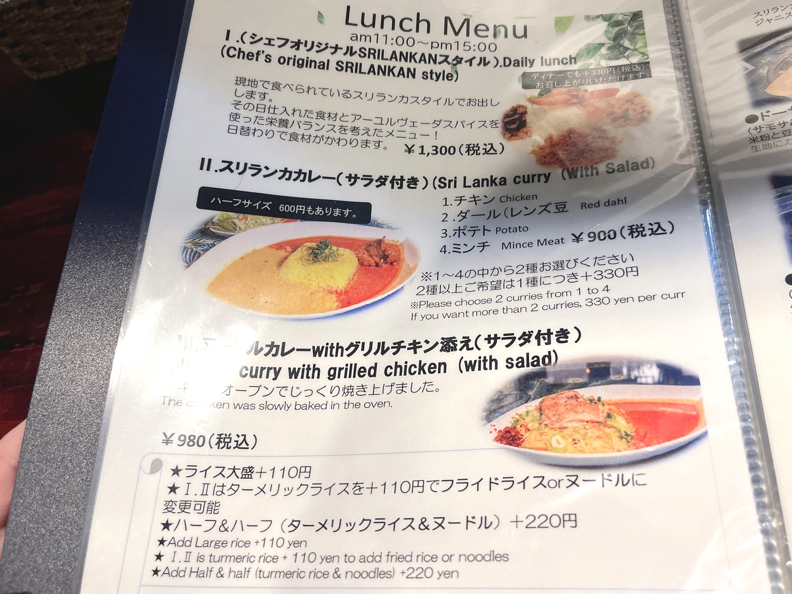 でも私がどーしても気になったのは1番の『シェフオリジナルSRILANJANスタイル Daily lunch』。現地で食べられているスリランカスタイルなんですって。