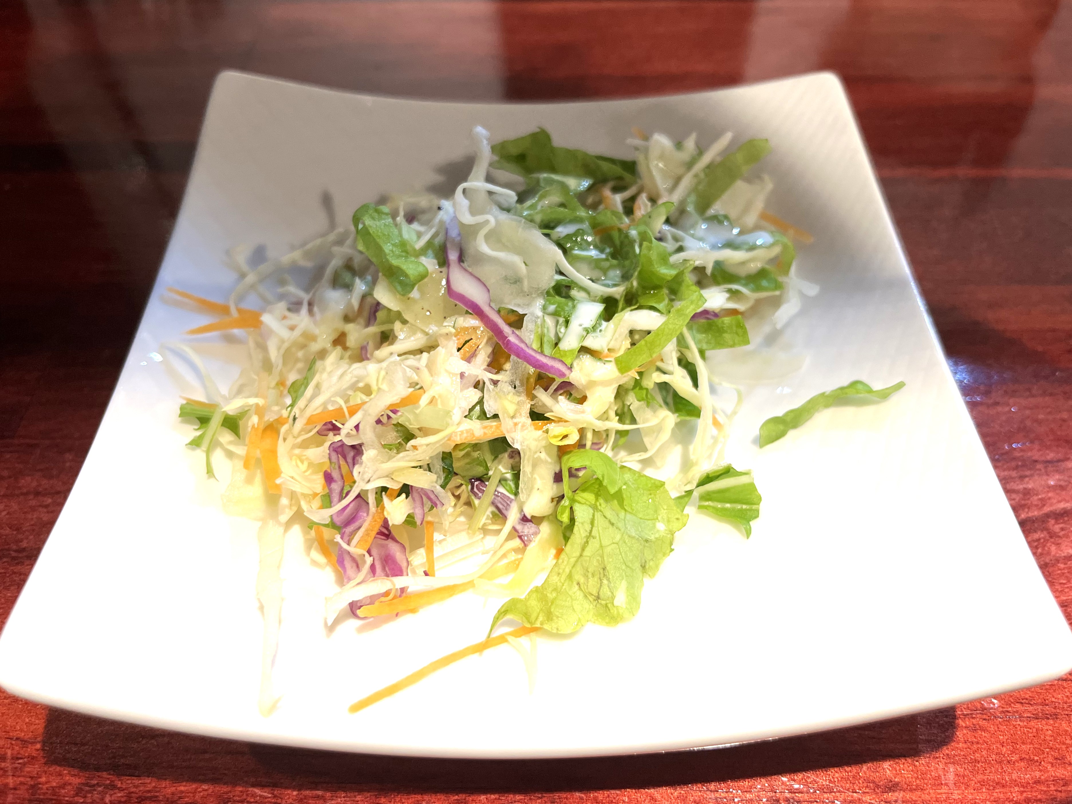 ランチメニューにはサラダ付き。ドレッシングは優しい味。
