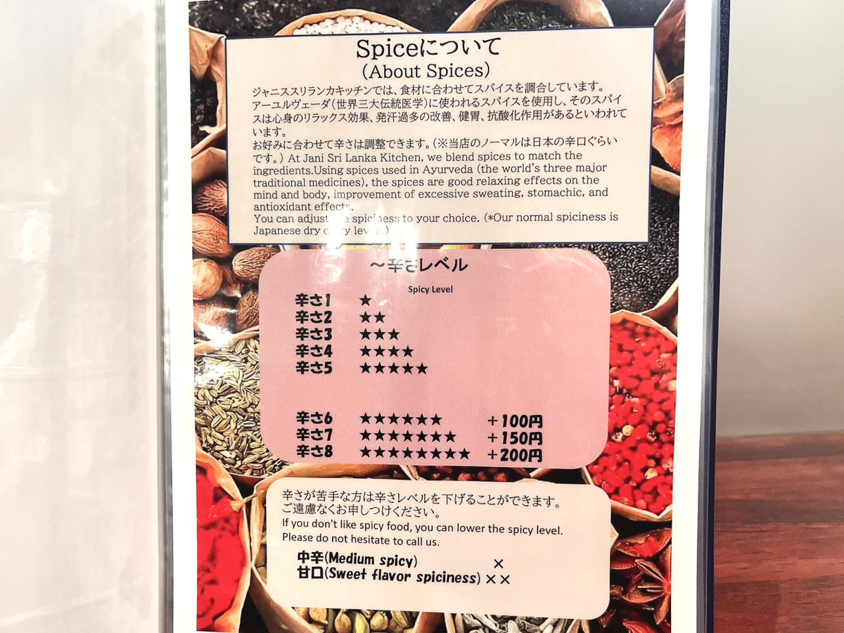 そして、辛さは細かく設定されていてお好みに合わせて選べます。辛さ1は辛口レベルなんだそう。しかし、辛い物が苦手な方もご安心ください。中辛や甘口など辛さレベルを下げることもできるんです。