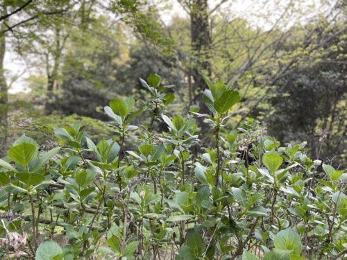 紫陽花が沢山!これからきっと綺麗に咲くのでしょう。道沿いにずっと植えてありましたので、とても楽しみです。