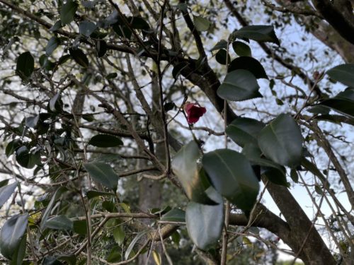ぽつりと椿の花が。