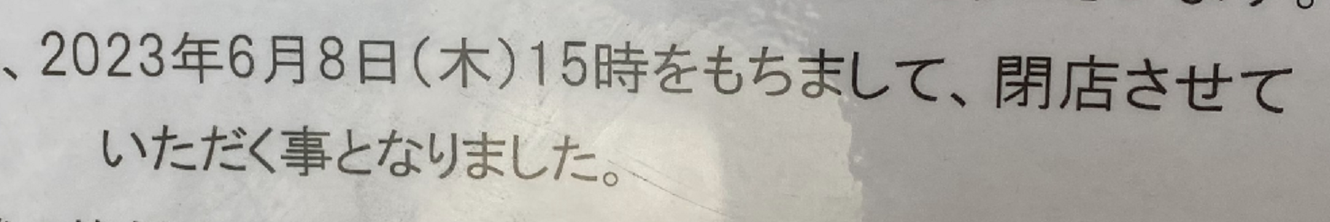 あまりにも寂しくて閉店理由を尋ねたところ、地主さんと契約更新ができず閉店となったんだとか。