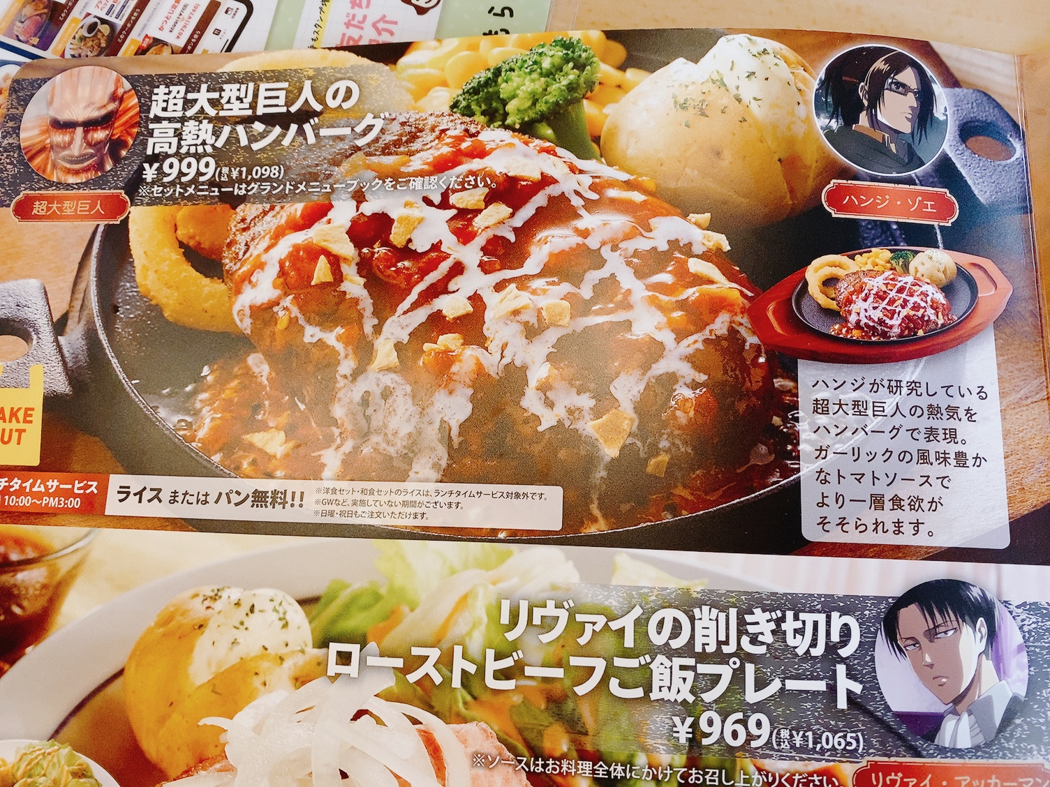 現在、期間限定で進撃の巨人コラボメニューを展開しているジョイフル。
