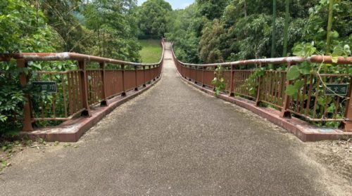 つり橋とありましたが、しっかりとした橋で揺れることもありません。下には江田川が流れています。