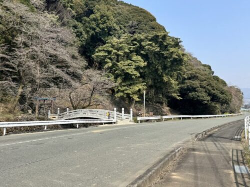 この石橋と鳥居を左に見ると、右手が「かぶと岩」がある場所です。駐車場はありませんが、瀬田神宮の前の道が広くなっておりますので、そこに停める事が出来ます。