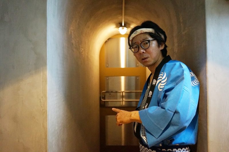 コンクリートの通路の先、重厚感のある扉の向こうでお祭りが開催されているそうですが、シーンとしています。とても防音に優れた扉なのでしょうか。