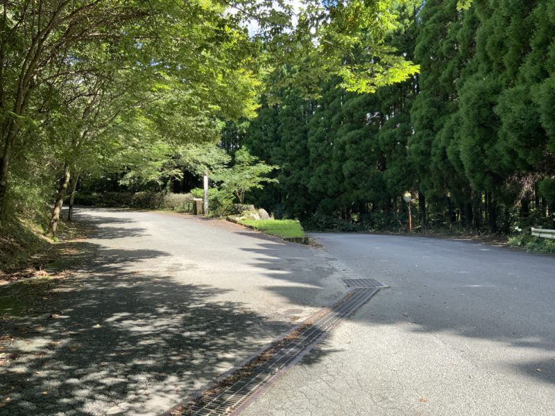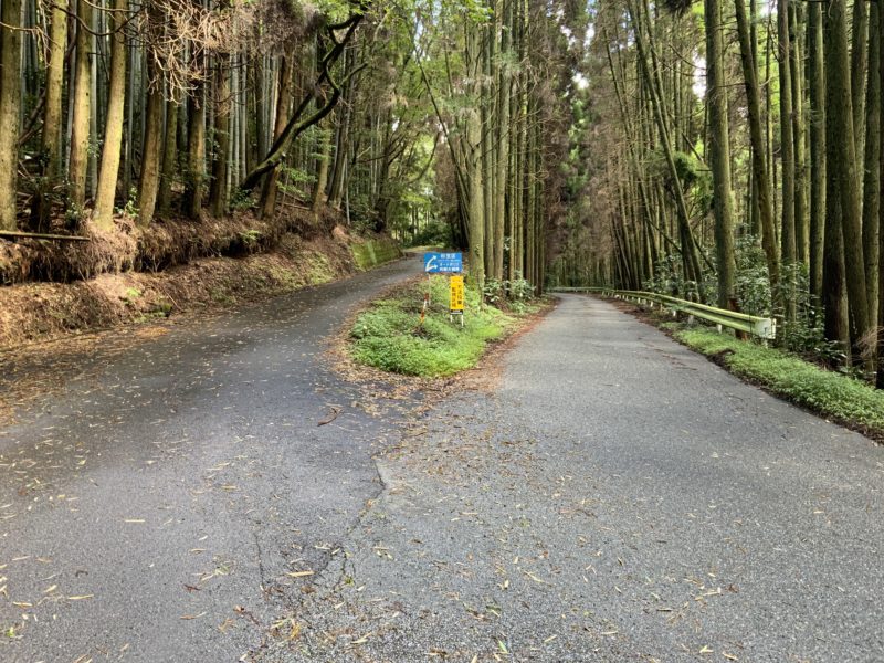 途中で大きな分岐が3度あるのですが、まずはじめがこちら。左に上に行くと菊池高原カントリークラブ。