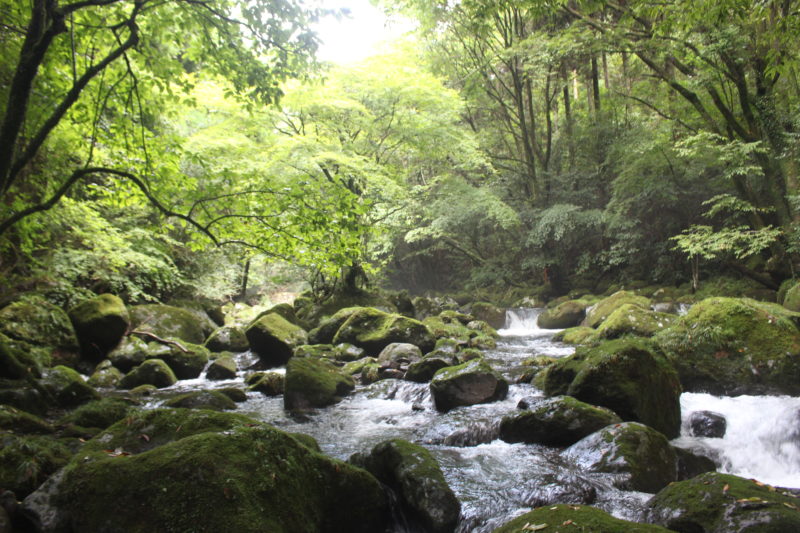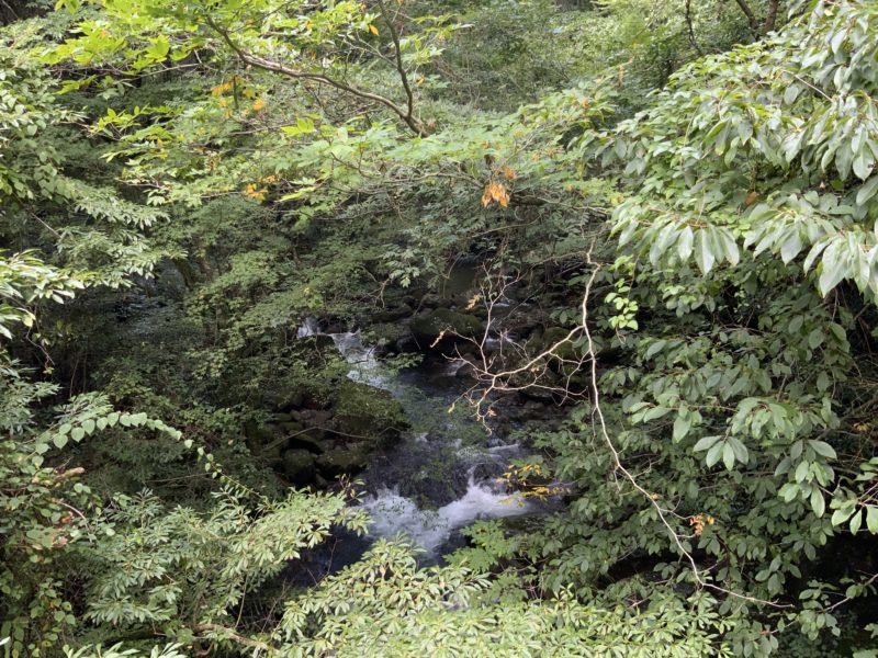 力強く流れる水と、岩にみっちりとついた苔。そして木々のざわめきがとても涼しくしてくれます。