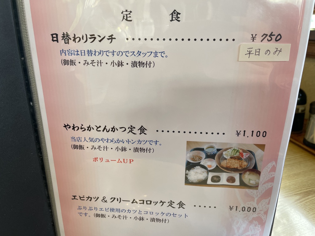 定食メニュー豊富です。まだ出てこないソースカツ丼。