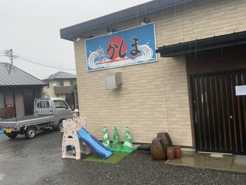 嘉島町上六嘉にある「海鮮炭火焼かしま」。嘉島町役場から御船方面に進み、途中で田んぼ道に入った先にあるお店です。