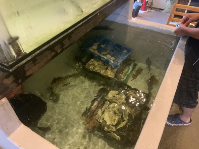 このいけす。なんでも息子さんが漁師で提供している魚は自分たちで獲ってきたもの。この日はちょっと少なめらしいですが、