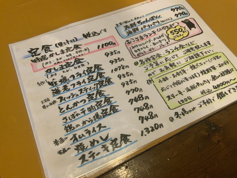 ほかにもとんかつ、からあげ、オムライスなどなど定番の定食も揃っていますし、チャンポン皿うどんまであるといういたれりつくせり。