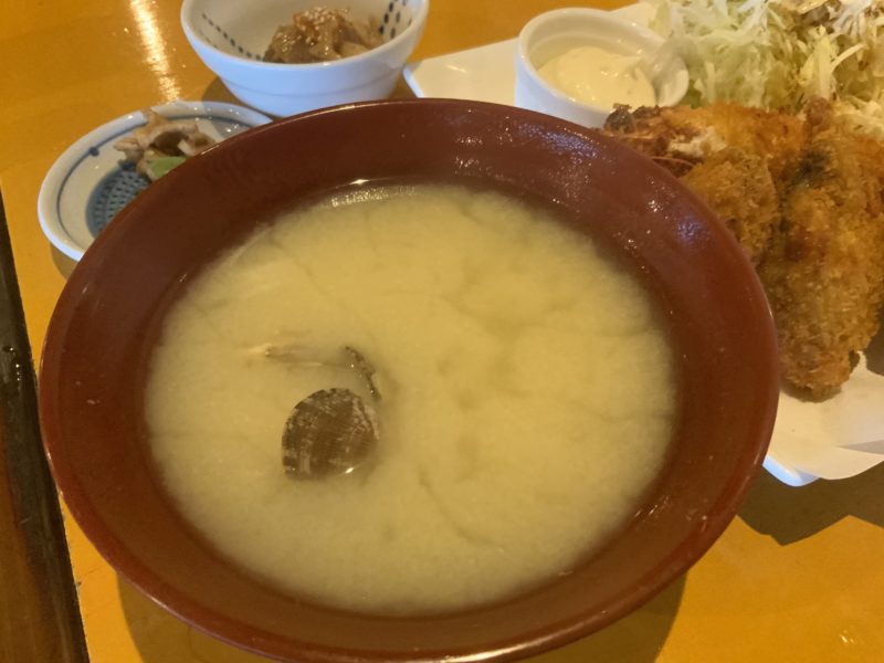 小鉢にお漬物もついて、さらにはどでかい貝汁まで。最高かよ。