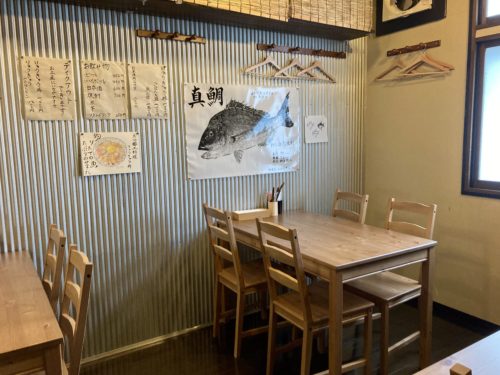 店内はこんな感じ。真鯛の絵のインパクトがすごい!