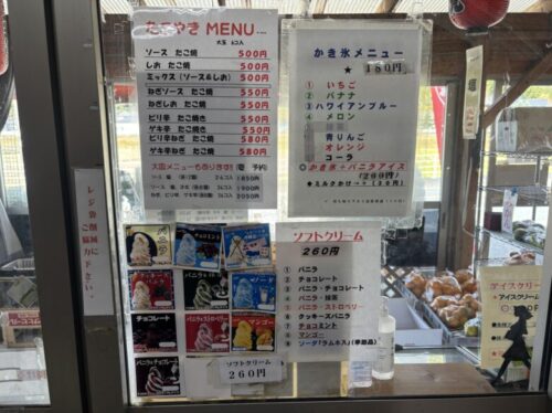 かき氷にソフトクリーム、たこやきなどもありドライブ中に寄れるちょうど良い一面も!