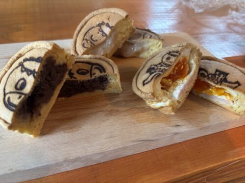 こんな感じの呼び方はいろいろありますが、今川焼きの様なお菓子です。