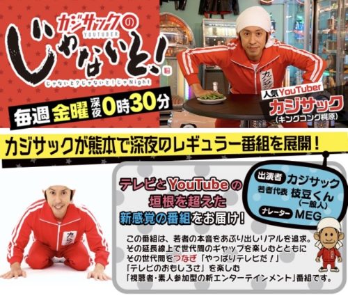 「カジサックのじゃないと!」は、毎週金曜深夜0時30分〜放送中。