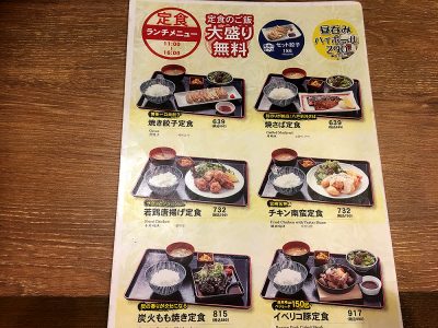 いずれもご飯大盛りは無料で、おかずに餃子のが追加が出来ます!
