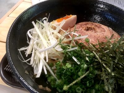 半熟玉子にチャーシューにおネギ。味は濃厚だけに薬味はさっぱりで!