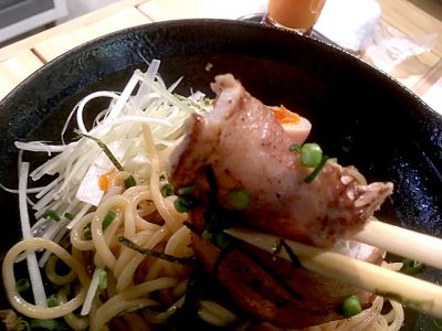 一般には脂っこい麺という印象もありますが、このそばは牡蠣エキスがうまく混ぜ合わさっていて、濃厚な味ながらもさっぱりスルスル食べられてしまうという本来相反する二つを併せ持った奇跡の麺です!