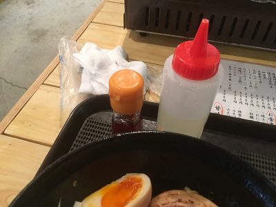 油そばに、お酢とラー油で味の調整もできます!結構多めにお酢を入れても大丈夫。