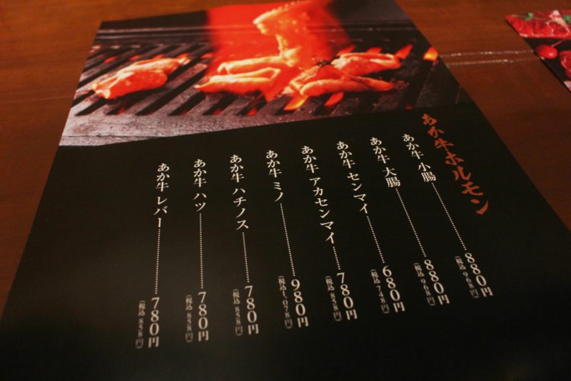 しかも、あか牛のホルモンまである!これは結構珍しいと思います。ホルモン好きにはたまりません。
