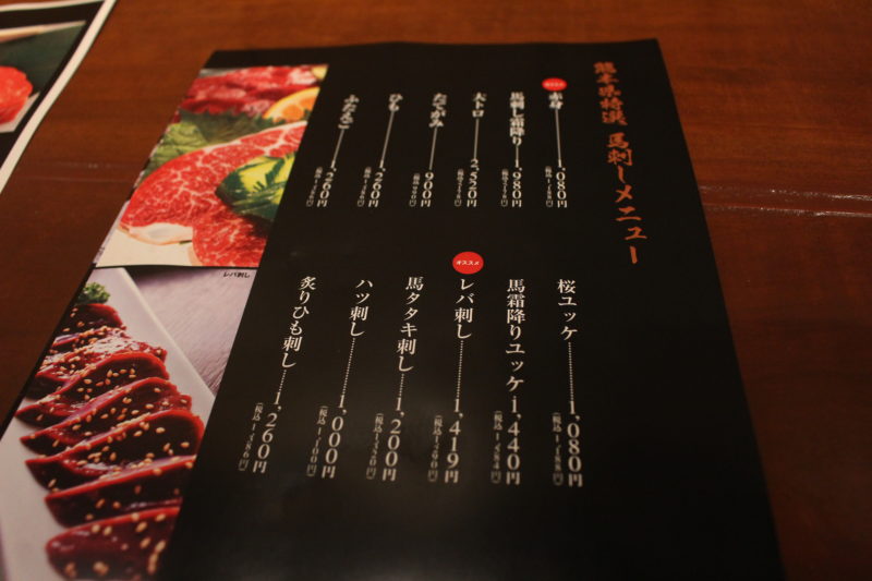 「熊本の人も県外の人も楽しめるお店にしたい」という思いで、あか牛のみならず熊本の誇る馬刺しも提供するそうです。