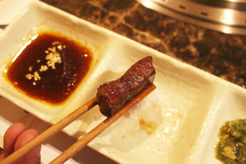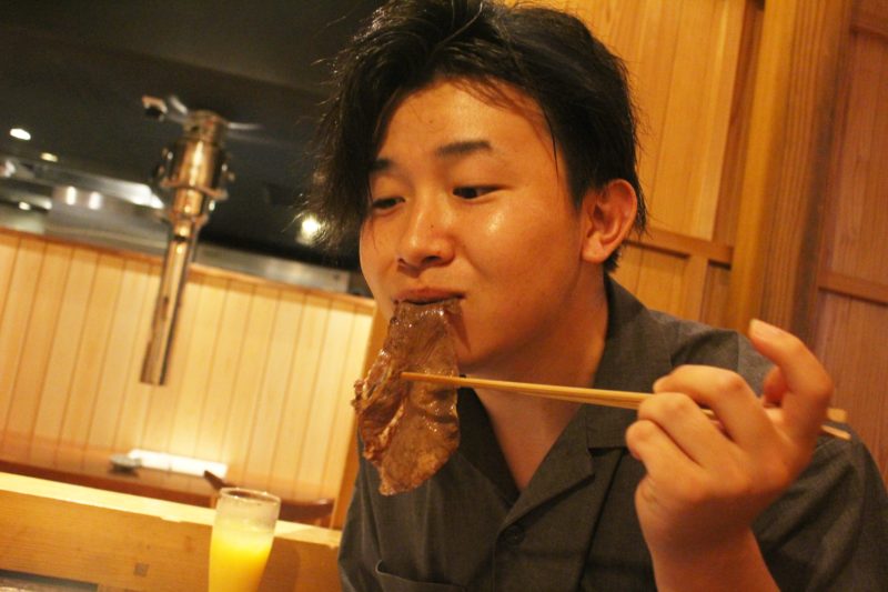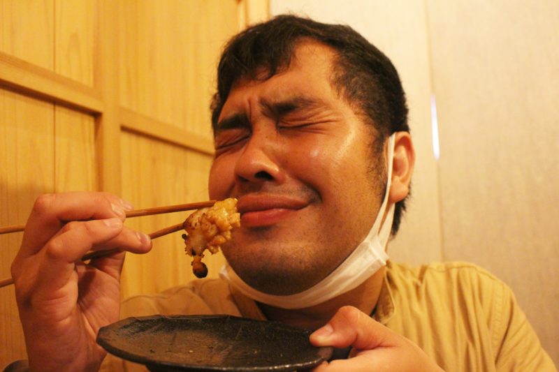 一口食べると、もう病みつき。タレか塩かワサビがあるんですが、個人的には断然塩!それだけお肉の味がしっかりしています。